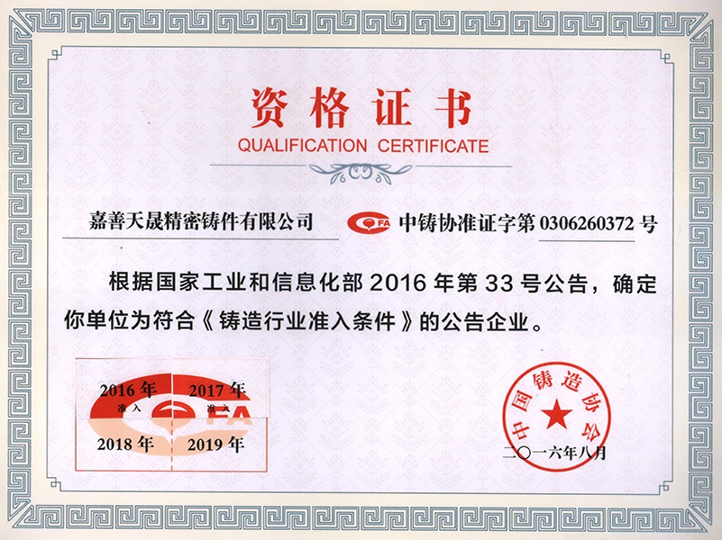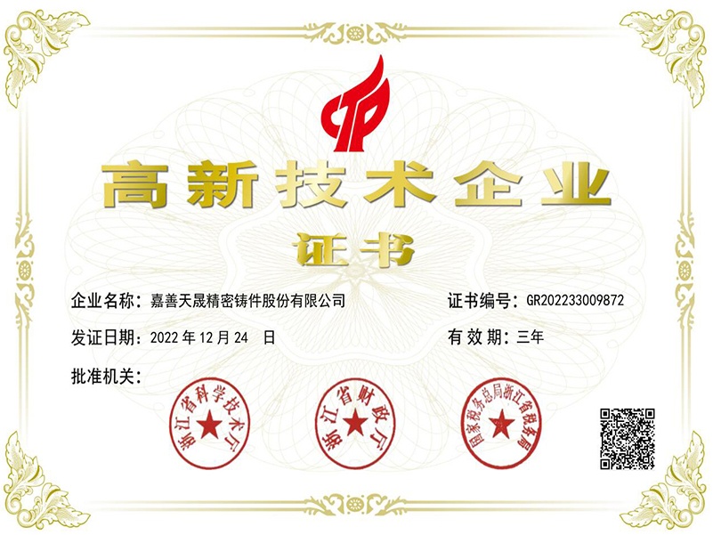 嘉善天晟精密鑄件股份有限公司創(chuàng)立于2008年,集設(shè)計(jì)、加工、生產(chǎn)為一體,是國(guó)內(nèi)領(lǐng)先的精密鑄造商。天晟重視技術(shù)和人才的投入,技術(shù)和產(chǎn)品國(guó)內(nèi)領(lǐng)先,與國(guó)際前沿技術(shù)保持同步。公司擁有完善的硅溶膠精密鑄造、加工、檢測(cè)等各種設(shè)備,從設(shè)計(jì)生產(chǎn)、材料分析到后續(xù)加工提供一整套穩(wěn)定的質(zhì)量控制和技術(shù)支持,為高要求、精要求的客戶提供高品質(zhì)的鑄件產(chǎn)品。